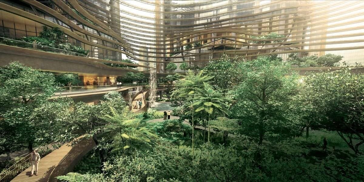 One of the standout features of Marina One Residences is its "City in a Garden" concept, which combines lush greenery and flora with modern architecture. The development features multi-stepped gardens, inspired by rice terraces in South-East Asia, and a "Green Heart" area that includes a waterfall display, pavilions, and areas for team building exercises like an aqua gym, BBQ terraces, and relaxation cabanas.